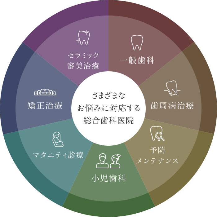 むし歯や歯周病、矯正治療、予防ケアまで、幅広い診療に対応しています。地域のかかりつけ医として、患者さま一人ひとりの生活背景に寄り添いながら診療を行い、小さなお悩みから専門的な治療まで気軽に相談できる歯科医院を目指しています。
