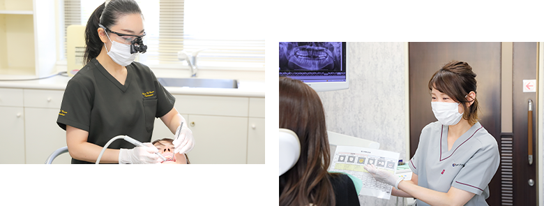 私たちは「患者さまファースト」の考えを大切に、常に患者さまの立場に立った診療を心掛けており、まずはじっくりとお話を伺い不安やご要望を丁寧に共有することから診療をスタートし、症状の背景や生活習慣まで理解したうえで、適切な治療方法をご提案いたします。どんな小さな悩みも気軽に相談できる、安心できる場所でありたい。そう願い、家族を想うような温かい気持ちで、誠実な歯科医療を提供してまいります。信頼を重ねながら、一人ひとりの笑顔と健康を長く支えていきます。