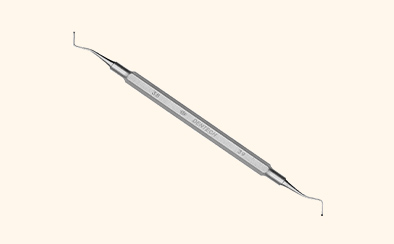 むし歯部分だけを丁寧に取り除くため、手作業で使用するスプーンエキスカベーターを活用しています。機械で大きく削らずに、やわらかくなった部分を慎重に取り除くことで、健康な歯質を極力残す治療につなげています。