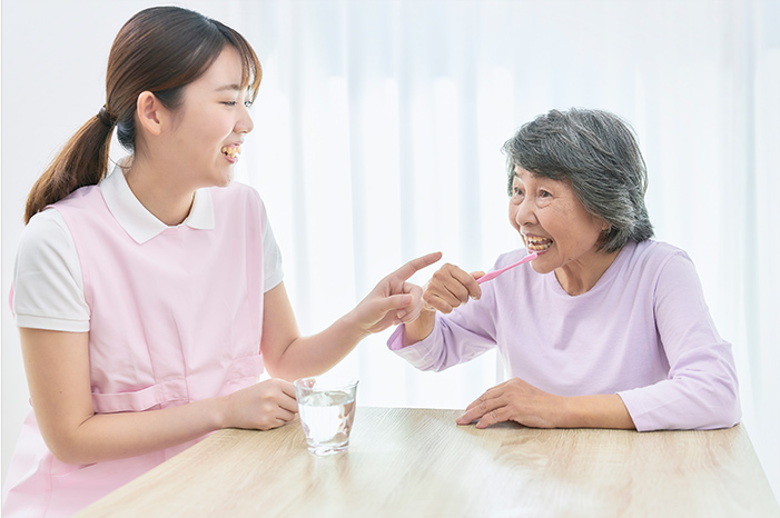 要介護または要支援認定を受けているかたは、介護保険での訪問口腔ケアがご利用いただけます。口腔清掃や義歯の管理、嚥下機能の維持など、日常生活を支えるケアを中心に行います。